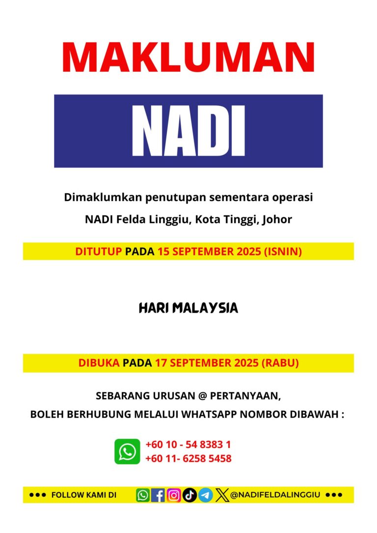 Program yang akan berlangsung pada minggu kelima bulan Oktober. Butiran lanjut boleh dirujuk dalam lampiran yang disertakan. Untuk pertanyaan lanjut boleh hubungi 010-548 3831 (Admin NADI Felda Linggiu)