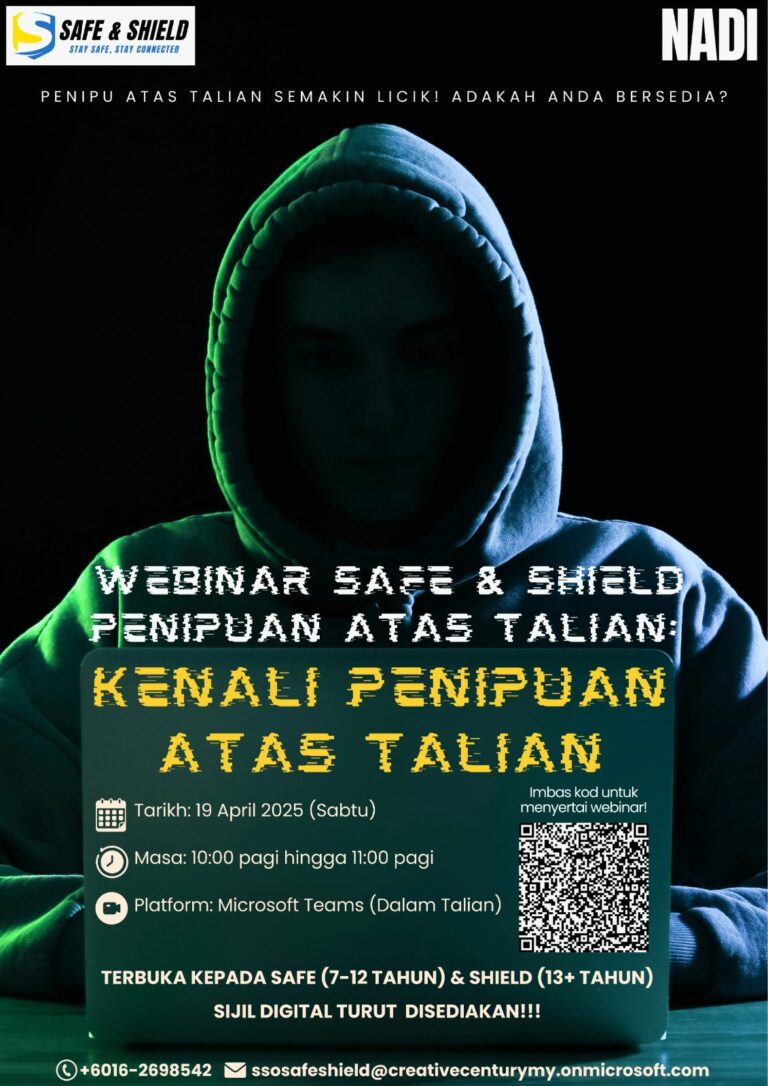 Webinar SAFE & SHIELD akan berlangsung bulan ini dengan tajuk “Penipuan Atas Talian: Kenali Penipuan Atas Talian”. Webinar ini bertujuan untuk meningkatkan kesedaran dan pengetahuan mengenai taktik-taktik penipuan digital yang semakin canggih. Maklumat webinar seperti berikut:📅 Tarikh: 19 April 2025 […]